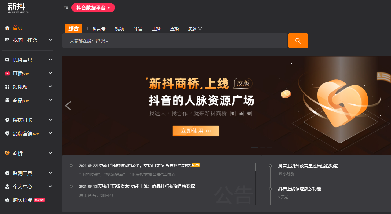 新榜旗下的新抖是比较好用的数据分析工具,可以查看抖音小店带货榜单、抖音小店排行榜等各种数据。